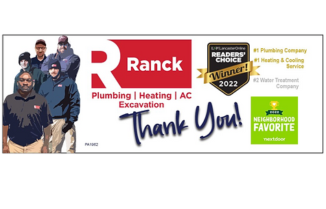 Ranck has won the last 5 years as: #1 Heating/Cooling Company, #1 Plumbing Company, #2 Water Treatment Company in Lancaster County, PA.
